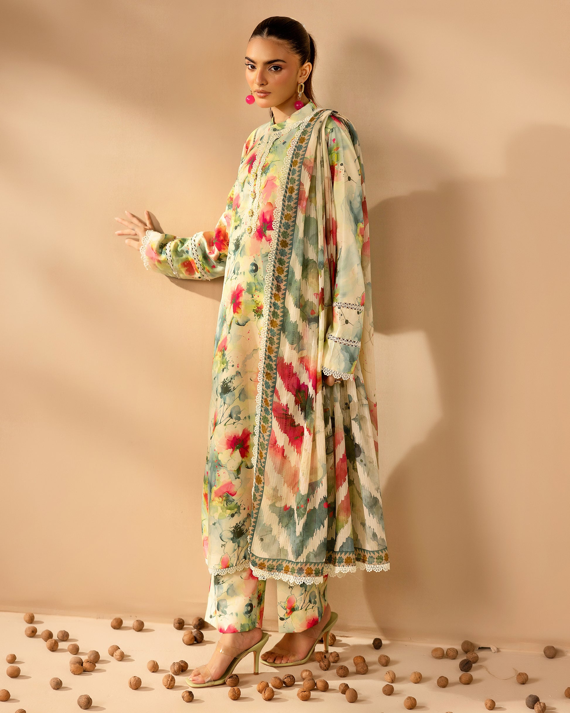 Elevate your wardrobe with the Staple Dora Digital Printed Collection, featuring a meticulously crafted design that merges contemporary aesthetics with timeless elegance. This exquisite ensemble is complemented by a diamond-printed dupatta that adds a subtle shimmer and refined detail, perfect for sophisticated occasions. Made with premium fabric and intricate digital prints, it offers both comfort and style for the discerning wearer.